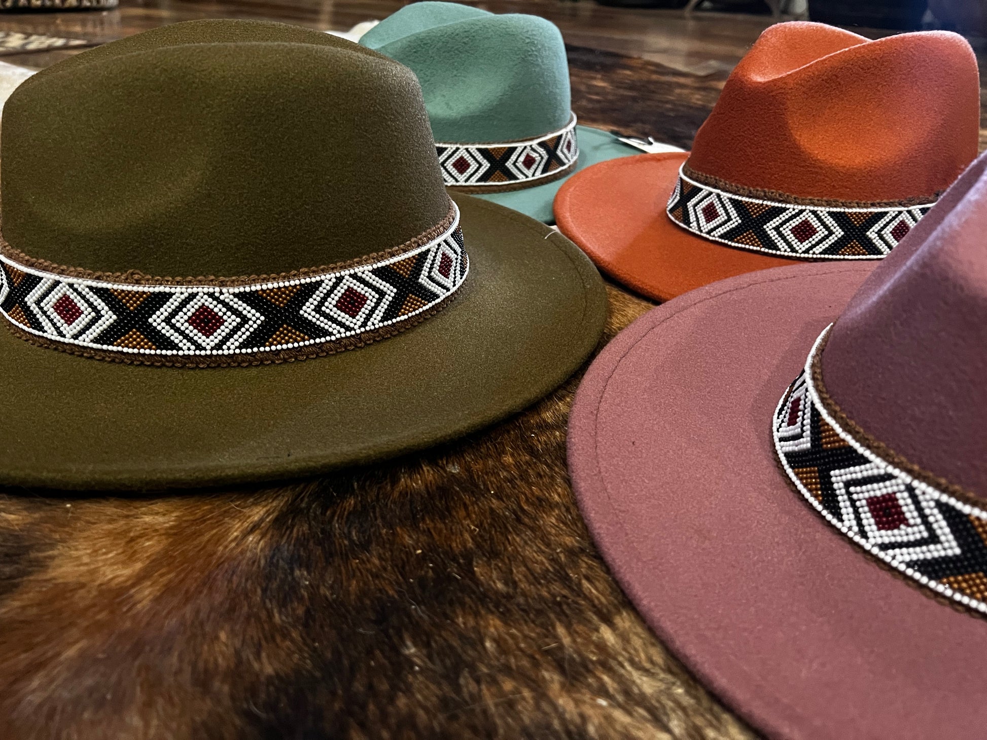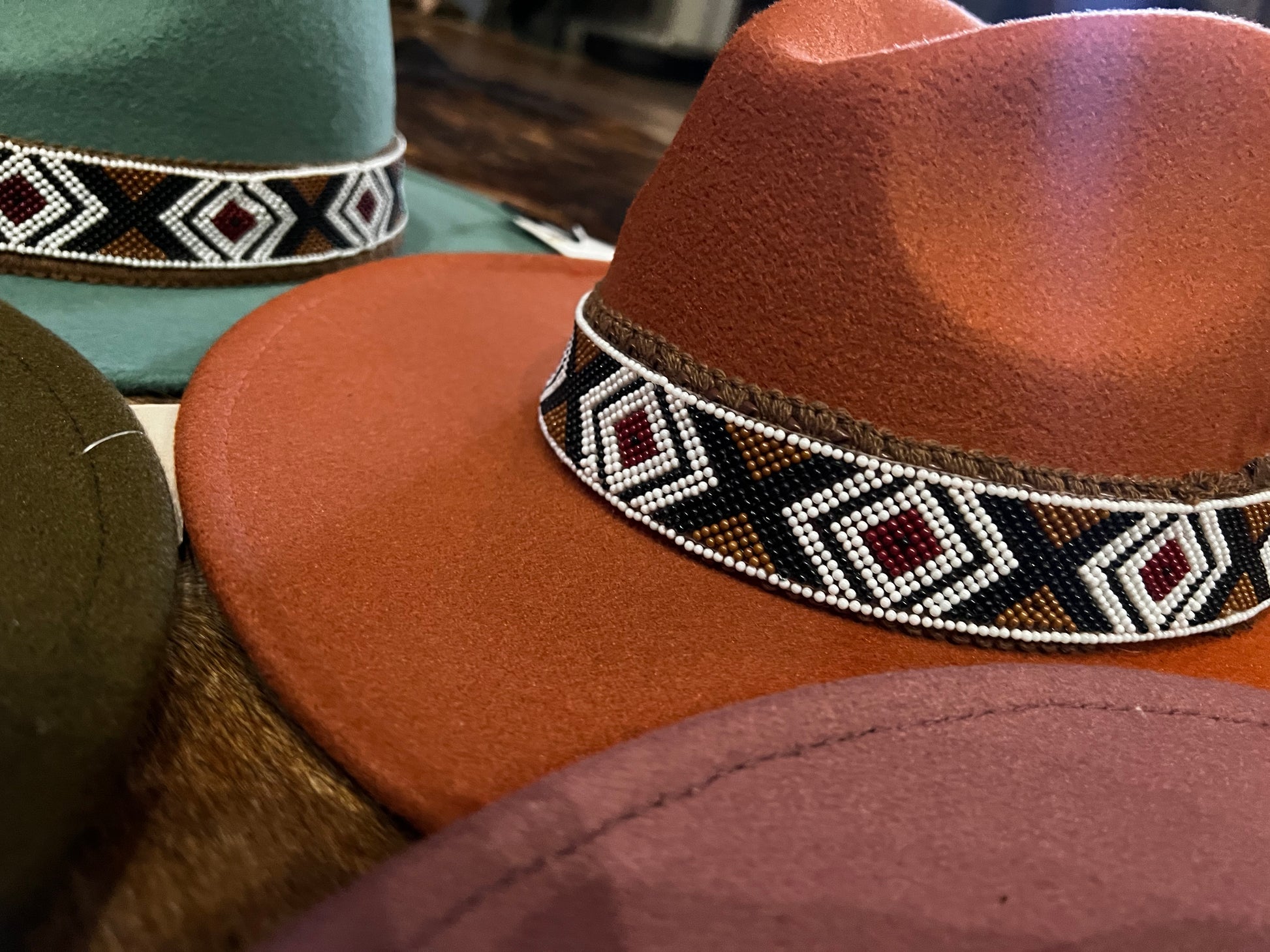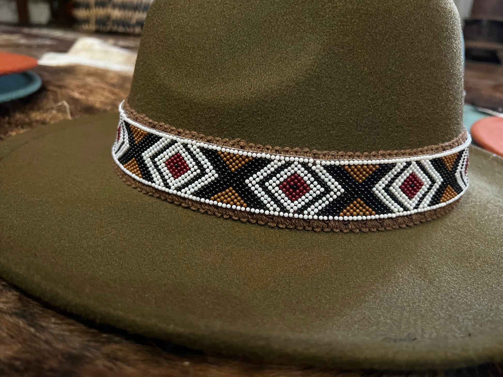 Style yourself with this sleek brown-trimmed hat, featuring an Aztec band! Show off your flair with a solid flat-brim Panama design, perfect for turning any outfit into a unique showstopper. Dare to be bold - this accessory is a must!