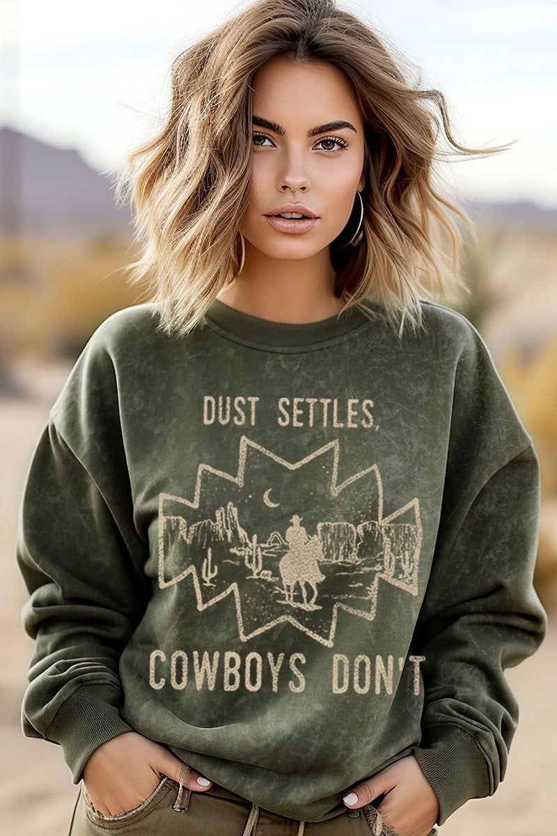 Experience the vintage look of the Desert Sweatshirt, with the unique softness only possible from our custom dye and mineral wash processes! This olive shaded graphic sweatshirt will show the world you’re a true cowboy who won't settle for anything less than the best!