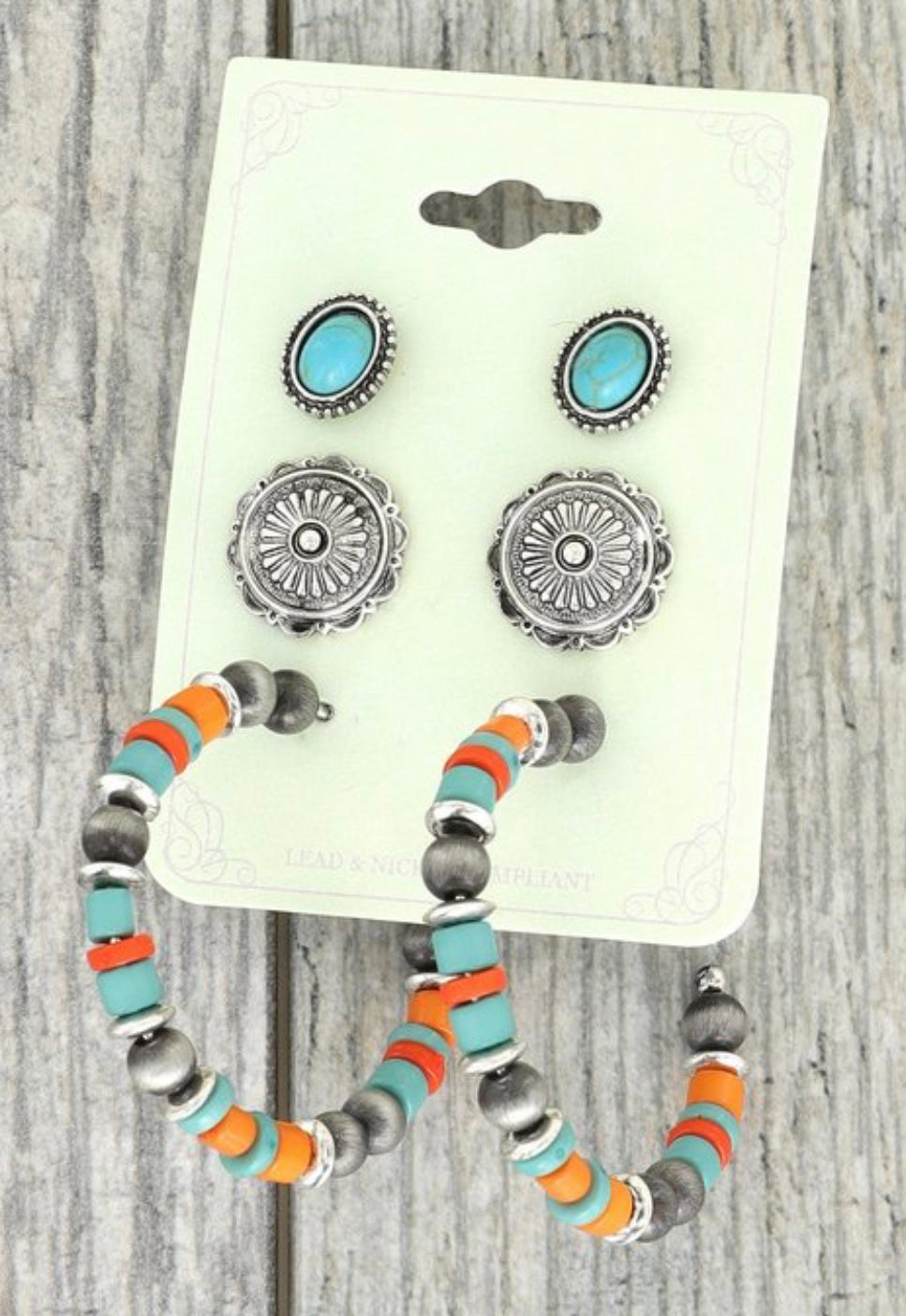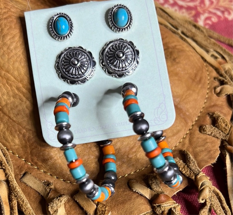3-PAIR ASSORTED WESTERN THEMED EARRING SET!