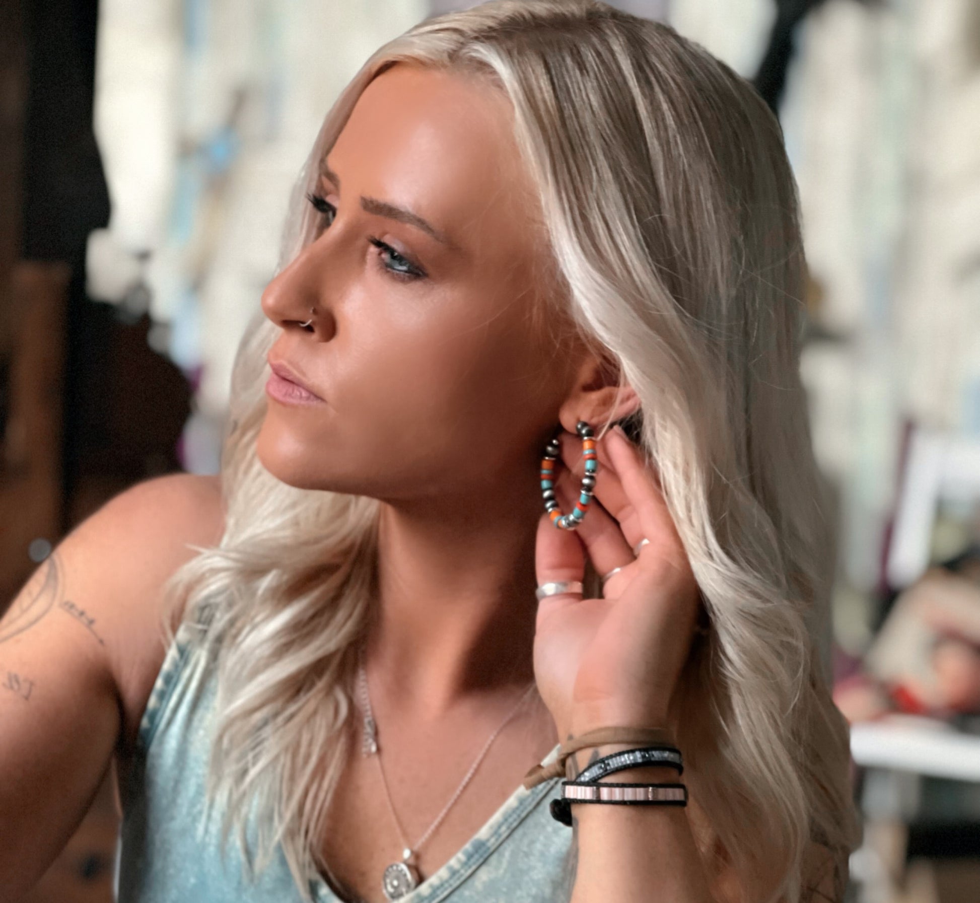 BEADED PEARL Stud, Concho Stud and Beaded Hoop Earring.