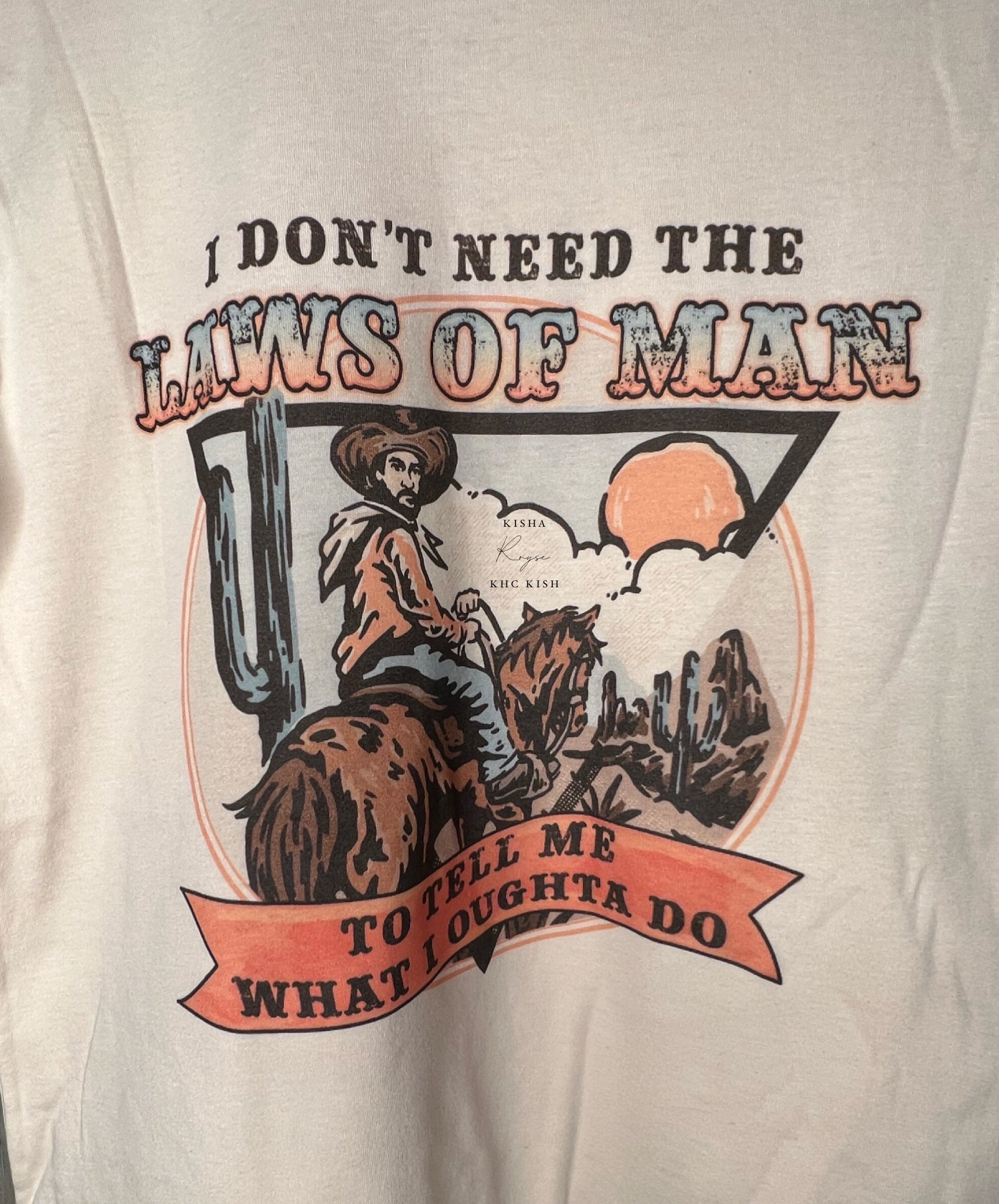 Feel confident and stylish in the Laws of Man Graphic Tee! Featuring a classic Cream color with orange and desert-inspired graphics, this short-sleeve tee is perfect for the fashion-forward. Crafted from 100% cotton, simply wash on cold and turn the shirt inside out to maintain its quality. Remember, these are not preshrunk and to avoid shrinking, avoid high heat in the dryer.