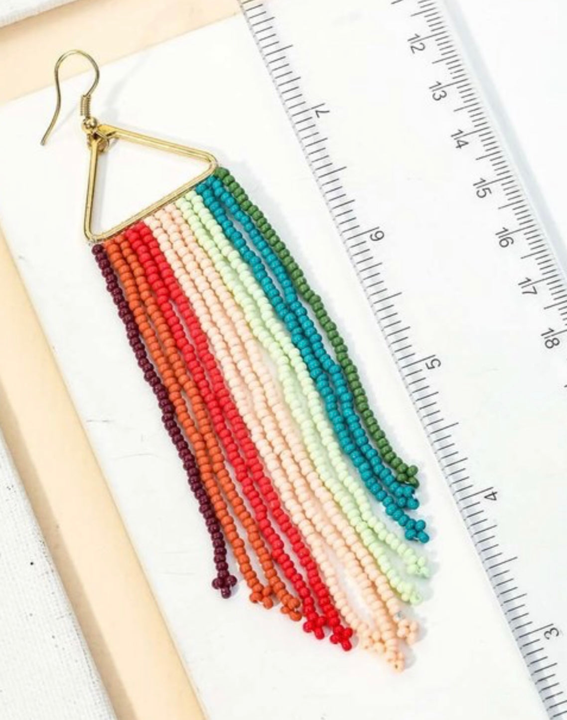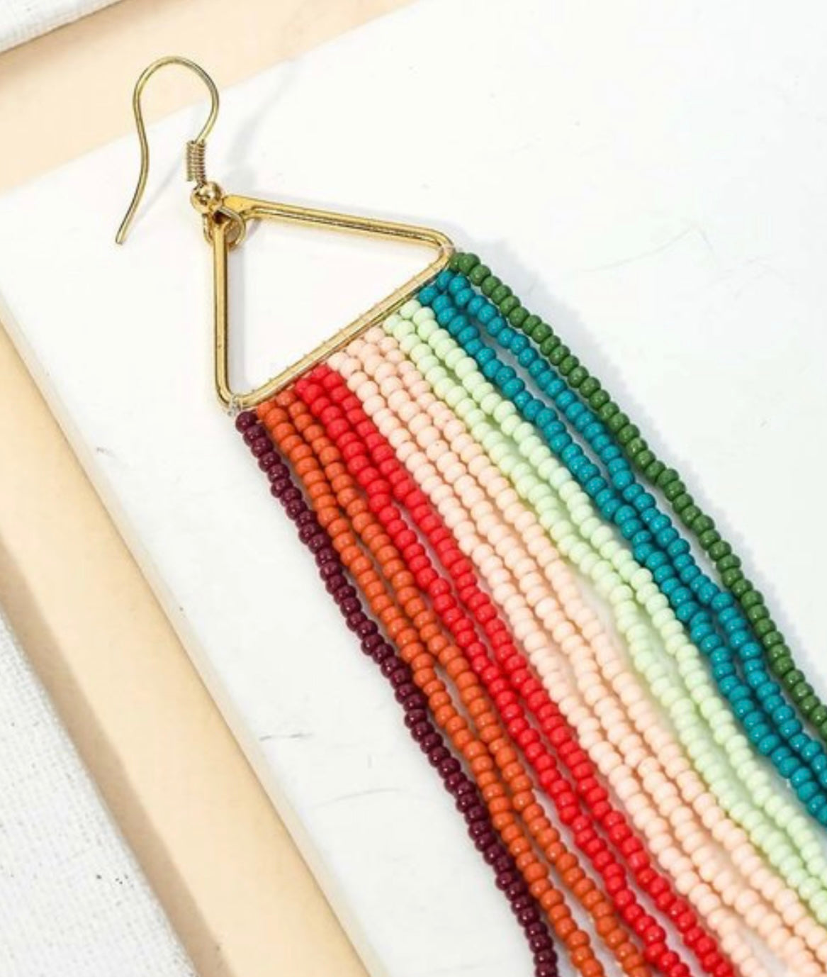 Lovely pastels - pinks, greens, olives, turquoises, reds, oranges, and wines! The ideal way to welcome spring with a triangley dangly beaded to a teardrop-esque style!