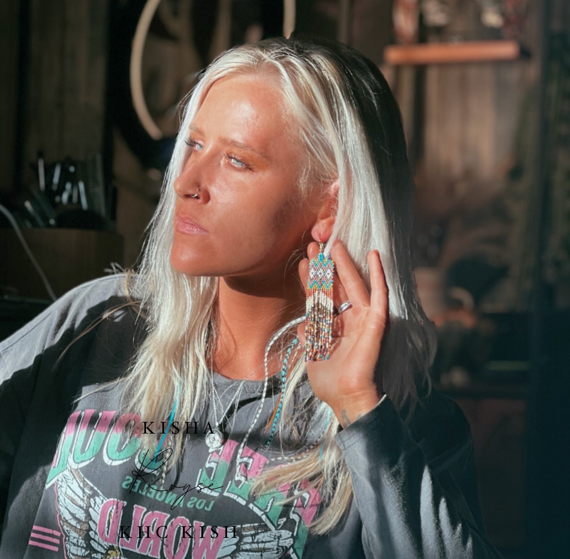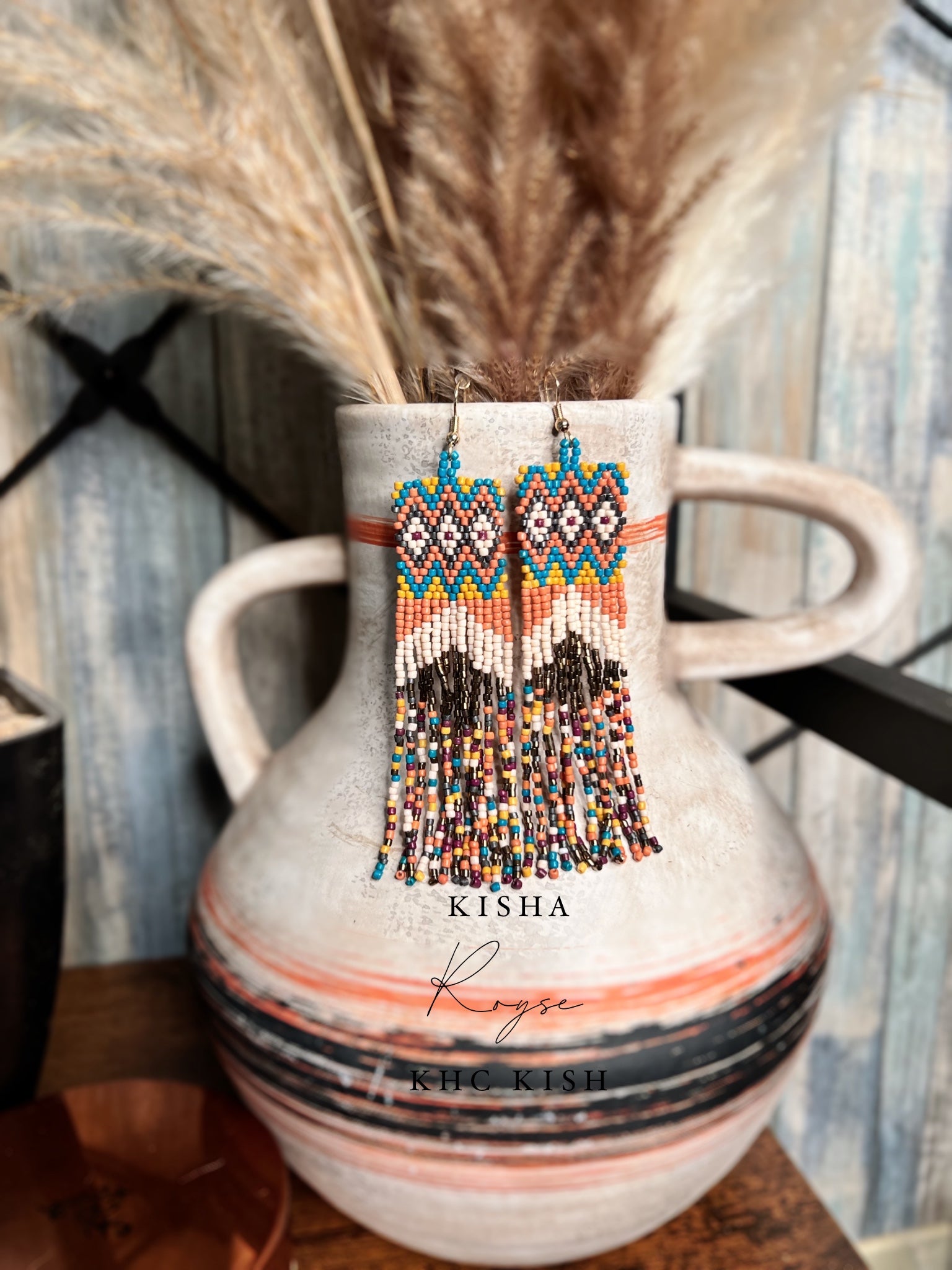 Beautiful boho seed beaded fringe earrings design.Shades of Mauve pastels, hints of blue, gold, yellow and lilac. A must have choice for any occasion, casual or formal.